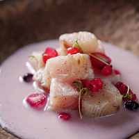 Гостей мы угощаем исключительно блюдами местной кухни. Шеф-повар Илья Бровченко собирает рецепты региона и придает им современное звучание. Все блюда в меню приготовлены из местных, региональных продуктов. Особые способы приготовления позволяют сохранить истинный вкус продукта, а авторская подача радует глаз.